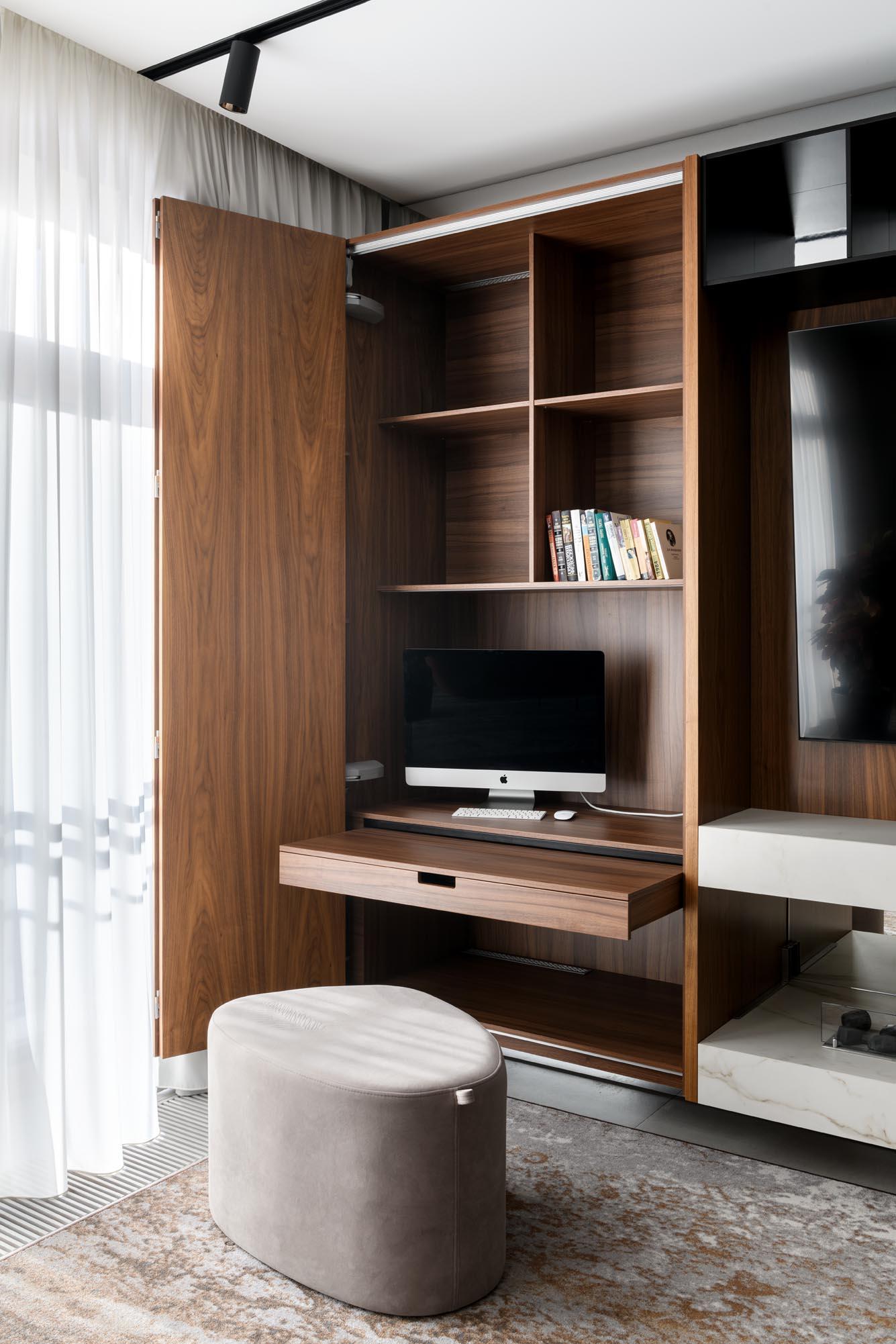 Решая вопросы функциональности интерьера своего нового проекта, дизайнер Людмила Ложкина столкнулась с задачей: как объединить многочисленные пожелания членов семьи на площади 100 кв.метров? На помощь пришли конструктивные решения-особый упор был сделан на мобильности элементов интерьера, способных трансформироваться и перемещаться.