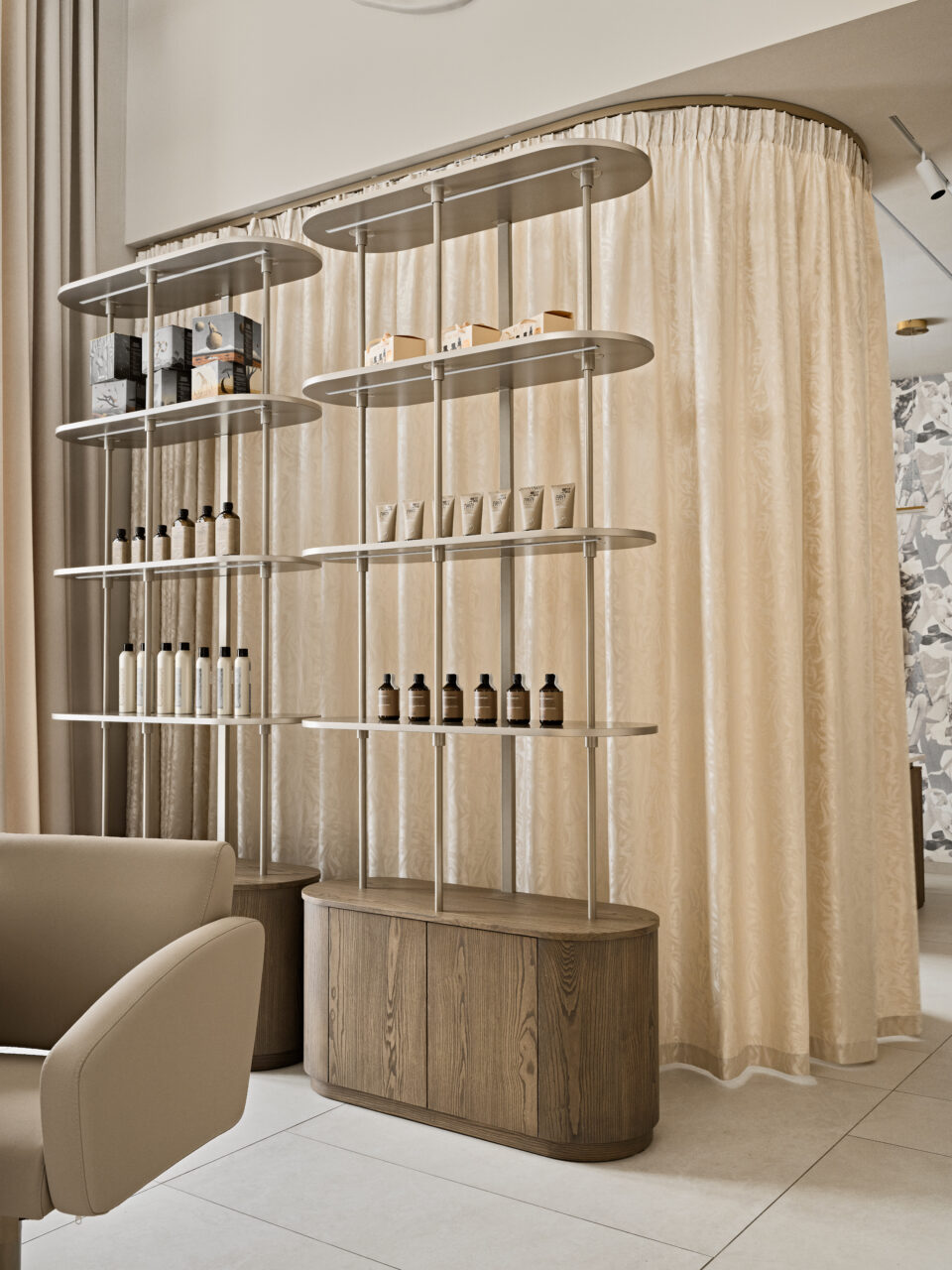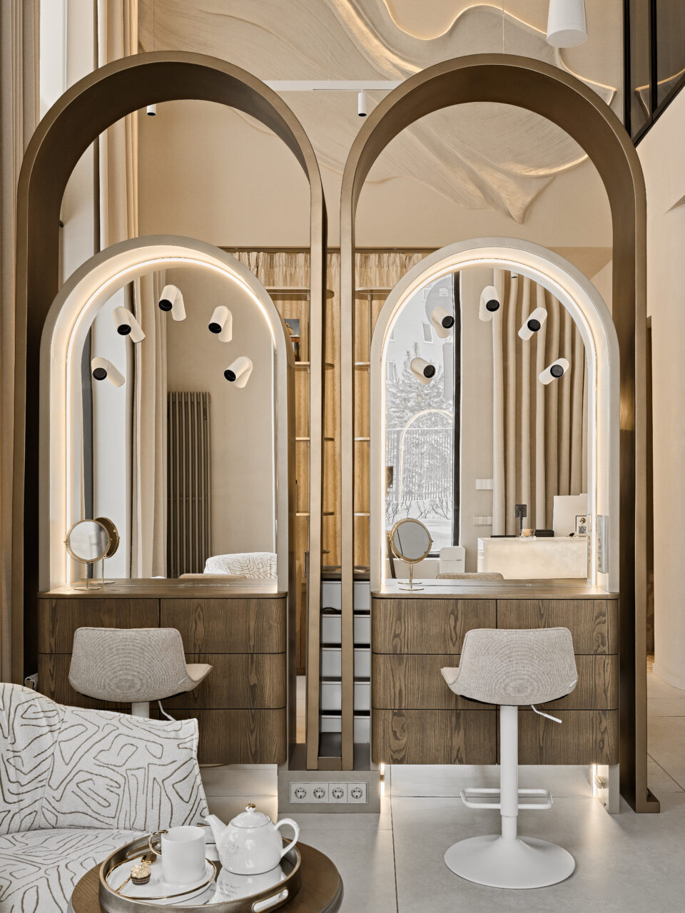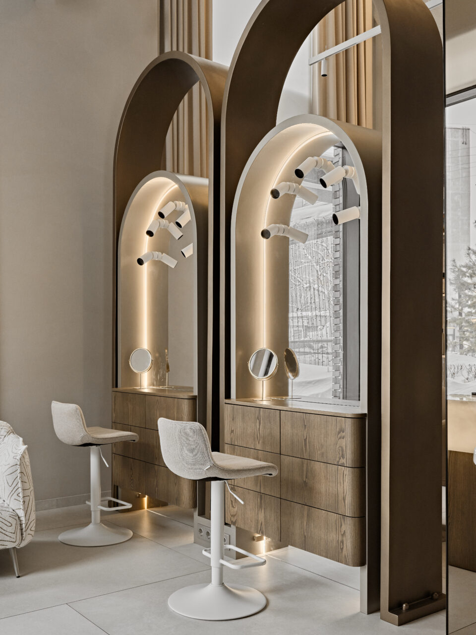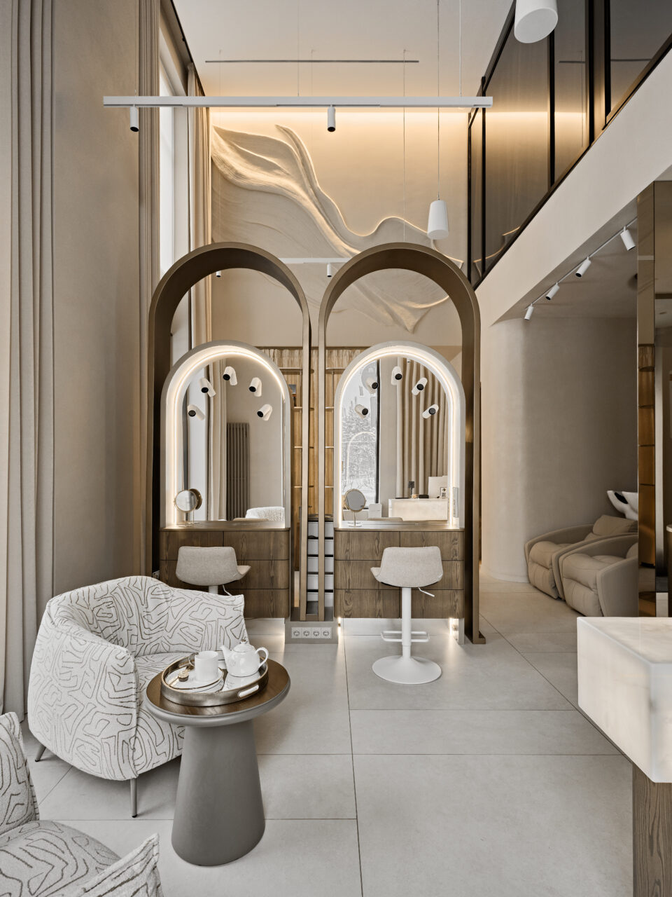 Пространство, наполненное красотой и гармонией — именно такую атмосферу мы стремились создать, работая над интерьером салона красоты. Задача заключалась в том, чтобы воплотить элегантность и утонченность, сохраняя ощущение комфорта и удобства для каждого гостя.