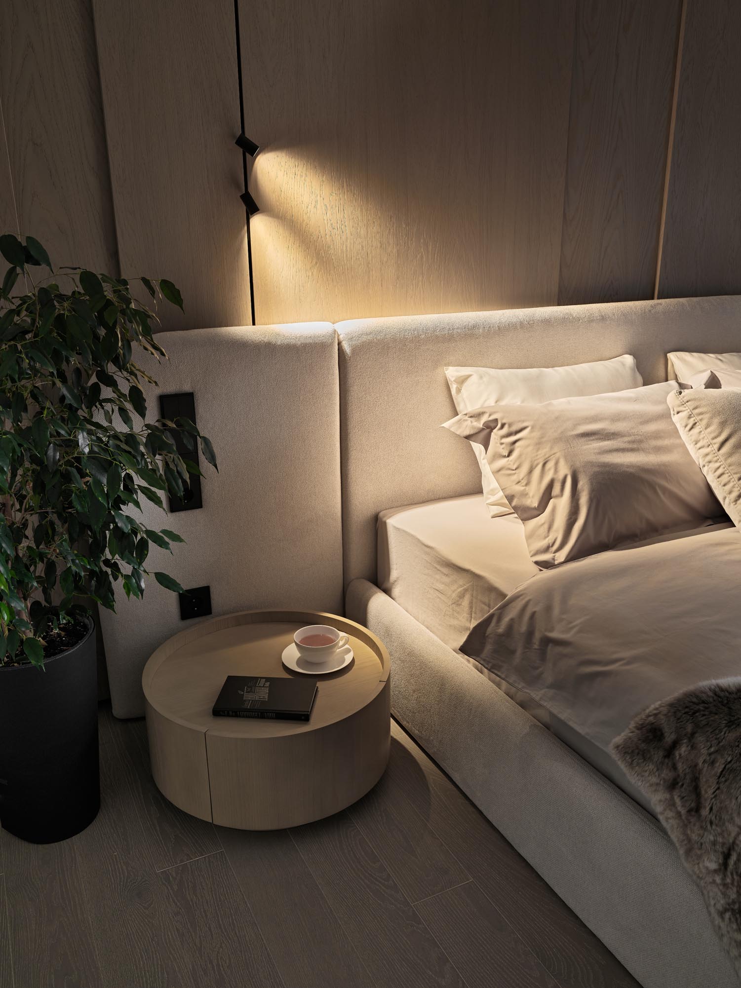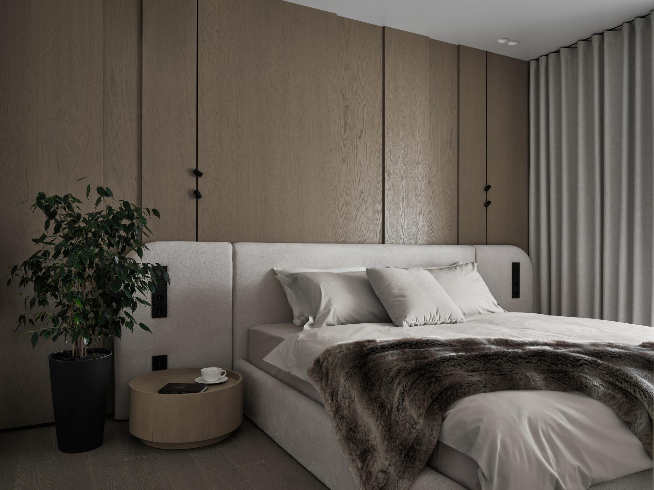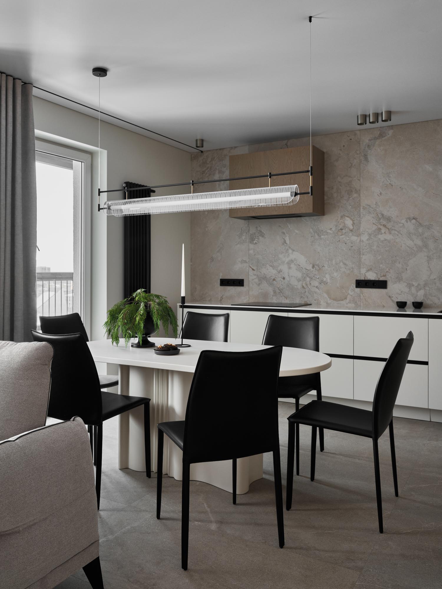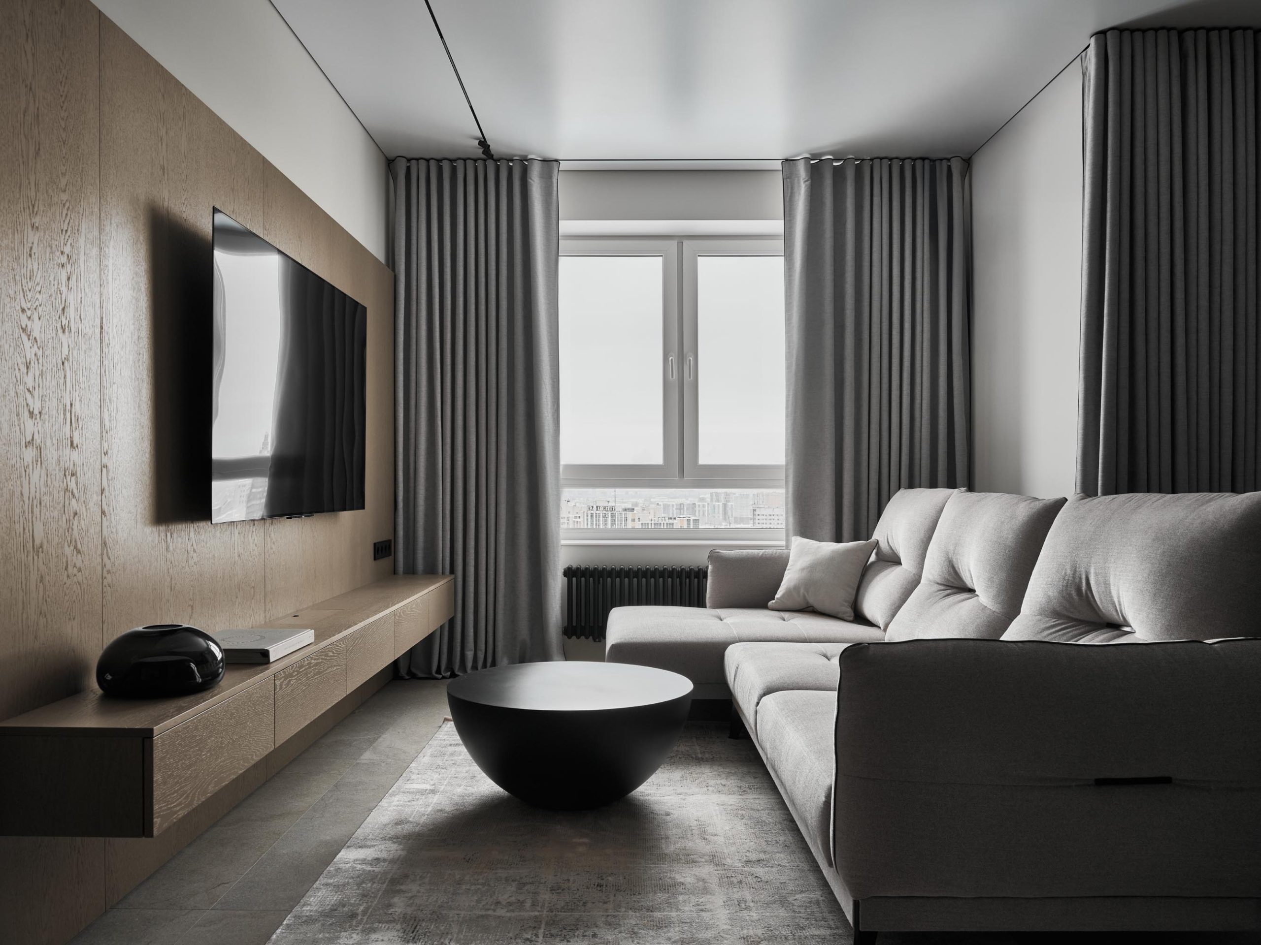 сновная идея этого проекта — баланс между энергией мегаполиса и камерным уютом частной жизни. Евгения Батура создала свободное, многофункциональное пространство для семьи из пяти человек, где природные материалы и гармоничные формы стали мягким противовесом урбанистическому пейзажу за окном. Автору проекта удалось гармонично разместить на площади в 100 кв. метров три детских комнаты, мастер-спальню, две душевые и продуманные системы хранения, сохранив ощущение простора и воздуха.