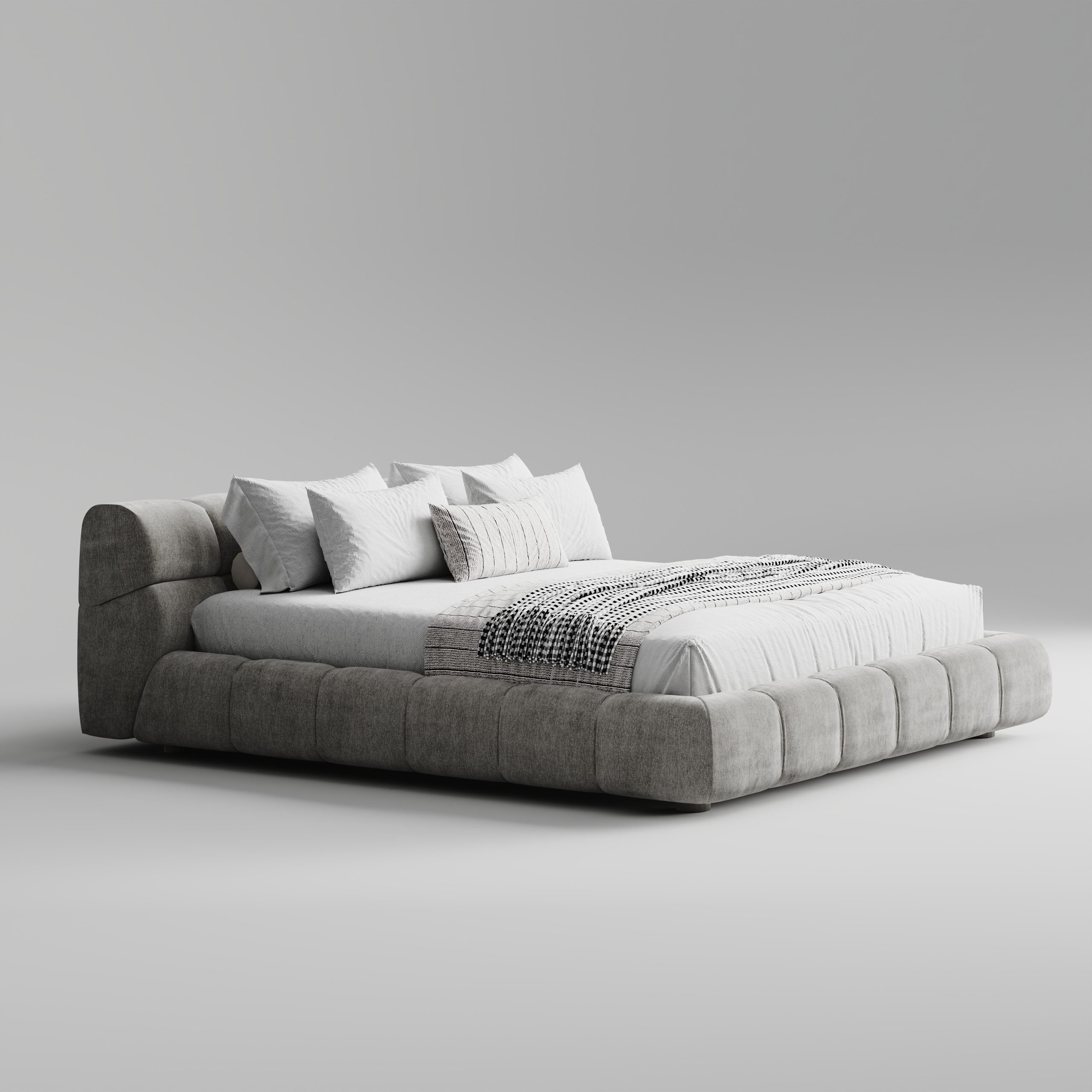 Пухлые формы, множество мягких элементов, сшитых между собой декоративной прострочкой, а также актуальный внешний вид. Двуспальная кровать с ортопедическим основанием, которая отлично впишется в современный интерьер. Возможны другие варианты отделки. Подробности уточняйте у наших менеджеров.