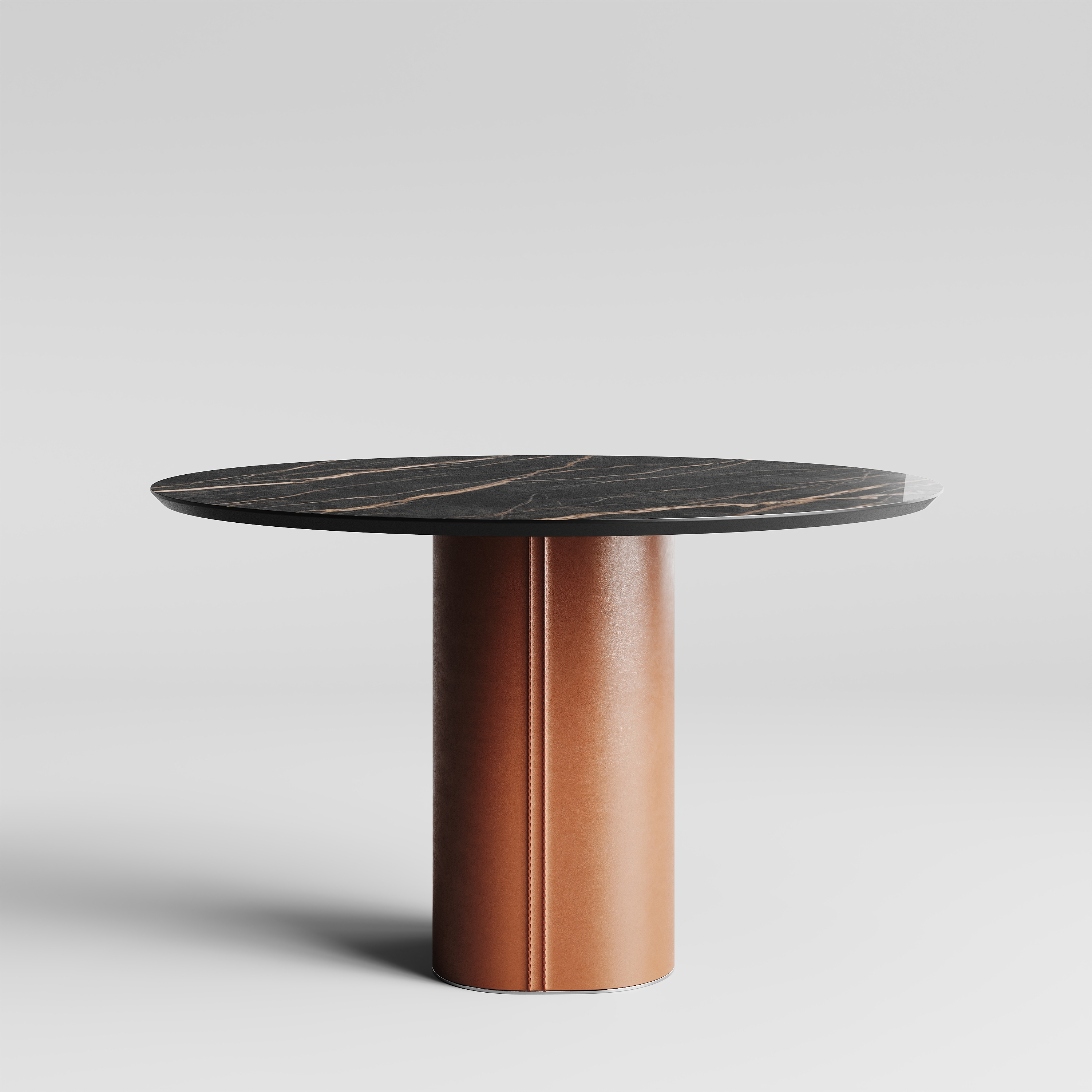 Обеденный стол ВАЛУН- когда круглая столешница дополняет необычное кожаное подстолье, вдохновленное природной геометрией камней на берегу реки. Со временем камни становятся округлыми и мягкими — так и этот стол обретает свой характер: плавные линии, глубокая текстура кожи и природная поверхность столешницы.Доступен в разных размерах и видах отделки. Возможные варианты отделки смотрите в разделе «материалы».