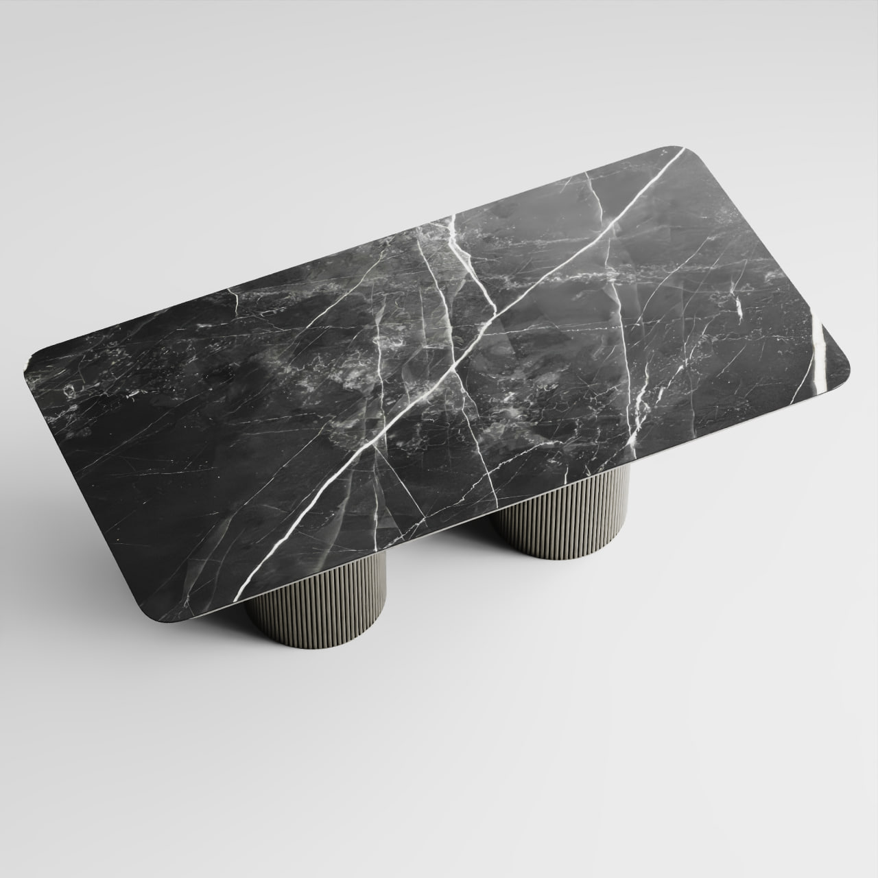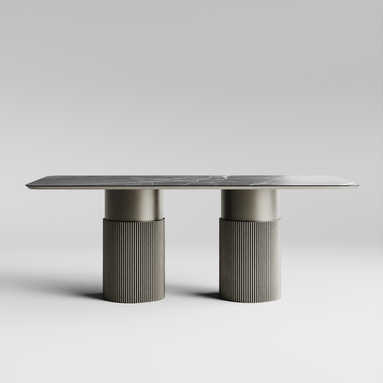 Прямоугольный стол «Штуцер» на металлическом основании. Множество тонких труб в аккуратном обрамлении из стали в районе столешницы. Классические пропорции в свежей интерпретации. Доступен в разных размерах и видах отделки. Возможные варианты отделки смотрите в разделе «материалы».